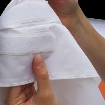 Hemmed pole pockets, top and bottom, are standard for all fabric church banners. Finished to accommodate a standard 3/8" dowel rod, custom pole pockets sizes are also available at no extra charge. Dowels are NOT INCLUDED with this finishing option. We recommend purchasing your dowel rods at a local hardware or supply store to save money on production and shipping charges. Please ask a sales associate for complete details.