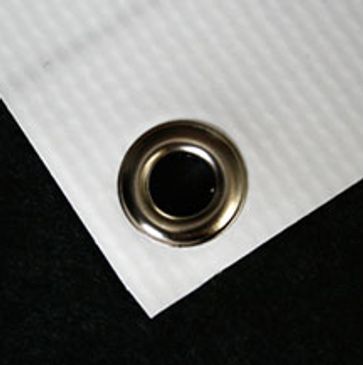 This is the most frequent recommendation and choice for matte vinyl church banners. Grommets are inserted into reinforced, stitched hems to provide a stable and durable method for displaying banners. Typically grommets are placed in the top two or all four corners of banners. However, large, oversized banners may require additional gromme